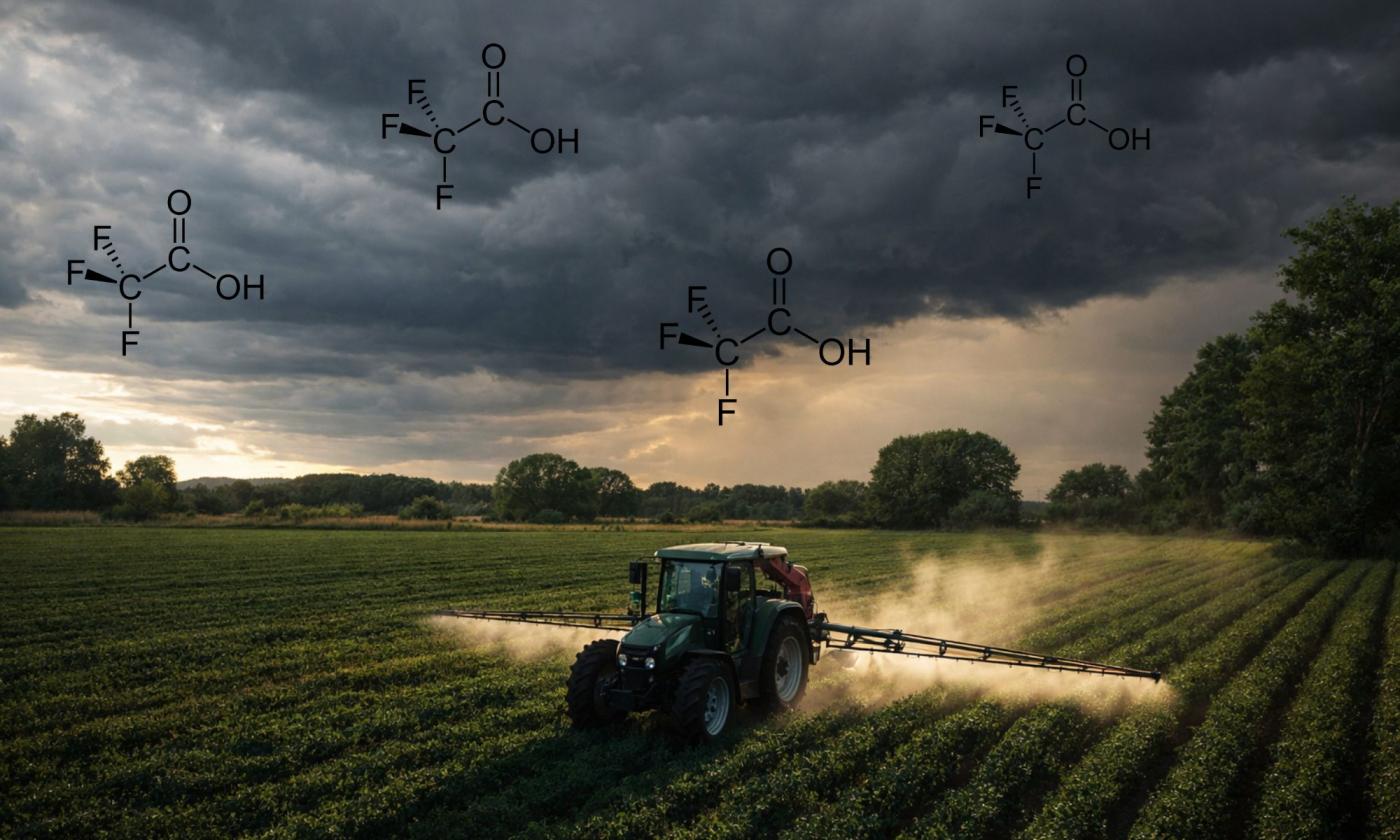 Bestimmte Pflanzenschutzmittel tragen fluorierte Wirkstoffe oder Hilfsstoffe. Biologische und chemische Abbauprozesse im Boden erzeugen aus diesen Verbindungen TFA.9 Beteiligte: Mikroorganismen und abiotische Prozesse wie Hydrolyse, Photolyse, chemische Oxidation. PAN Europe dokumentierte 2024: PFAS‑Pestizide stellen in ländlichen Gebieten die Hauptquelle der im Grund- und Oberflächenwasser gemessenen TFA‑Belastung. Der kausale Zusammenhang drängt Verbote auf.10