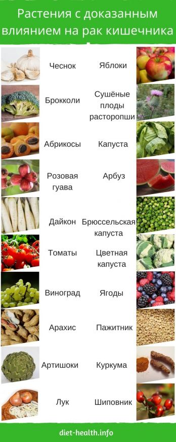 Растительная диета может предотвратить рак толстой кишки или помочь уменьшить существующее заболевание: она имеет высокую концентрацию фитаминов и, следовательно, растительных веществ, которые подавляют рост и размножение раковых клеток.